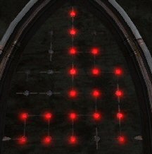 Enter the room and study the lines on the red cloth. Go back to the locked lined door at the main hall.
