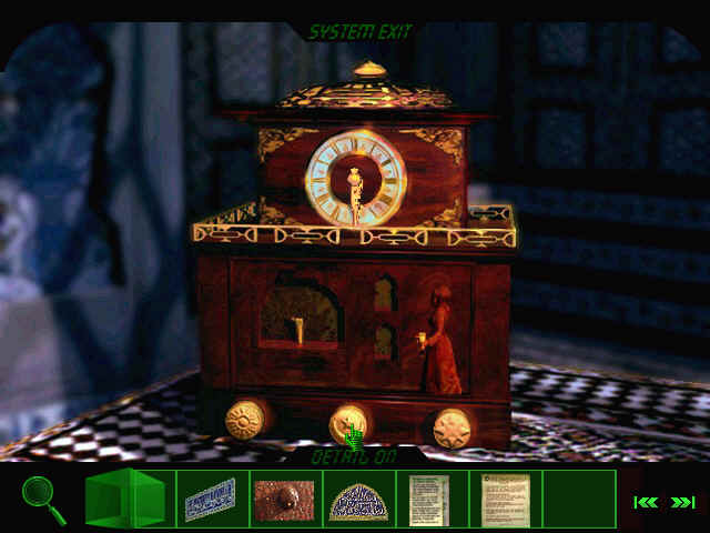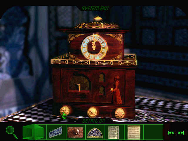 A : Exit the system and ask Sharife about the missing parts. Choose this option for more information : 2,2 (you should show the scanner again to the girl after this),3,2,2,1,1. Now you have to collect several pictures from different sites to complete KLIO (Topkapi Palace throne room simulation).