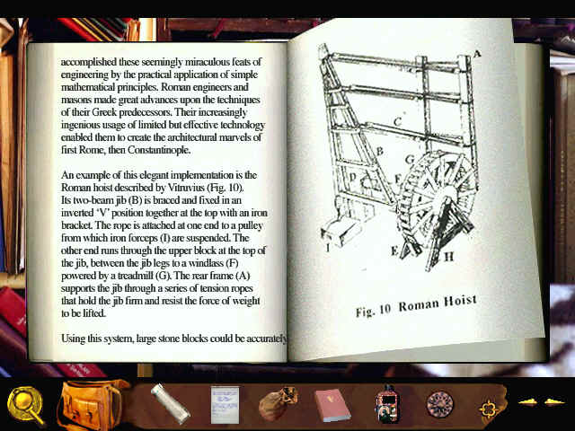A : You have to construct a roman machine there. There's a book with its picture in Emre's apartment. You might want to look at it before. It is called "Roman Engineering". It's on the middle shelf inside the study room. Then you have to collect several items inside the Basilica Simulation.