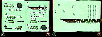 Turn away from the grilled gate with a vampire lock, forward 2x and see another similar gate. The vampire lock on this one shows a half moon at the bottom center (dark side on the right). Read the red book, using Hopkins' vampire eyeglasses and find the page that has the moon in rotation. The letter beside the half moon with the dark side on the left is G. On the left page the numbers after G are 9,4,2,6. Enter 9 -top left, 4 - top right, 2 - bottom right, 6- bottom left. Click the half moon. Gate opens. Enter. The end of the hallway is blocked by a Vampire face and to the right on the floor is a covered crate. Take the spade and the crowbar. Go back out and enter the quarry proper. Go forward towards the wood structure, turn right and look down between the stone slabs. Use crowbar to move the stone and pick up the detonator. Move forward towards the stairs, turn around and climb the pile of stones. Go forward, turn around and pick up the hammer and chisel. Go to the table. Look close at the drawer. Use hammer and chisel to open the drawer. Pick up the cable and use the hammer and chisel on the back of the drawer. Pull out the drawer and pick up the key. Go forward to the right of the table and look down on the box. Use the key to open the box. Pick up the dynamite and go back up the stairs to the Vampire face. Place the dynamite in the mouth and attach the cable. At a safe distance, attach the detonator to the end of the cable. Press the detonator and see the vampire's head explode dropping a pink jewel. Pick up the pink jewel. Enter the hole and go forward until you reach the prison.