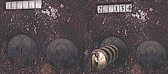 Leave the office and go into the asylum. Go down the stairs to the desk. Pick up the sugar cube from the saucer and combine it in your inventory with the matches, then place it on the table. Hear that pesky fly? That would make a nice snack for Hopkins! When the fly lands in the box, pick it up. Go up to the cells and look at the 3rd one. You will see Hopkins through the little panel. Open the door with the key you got from his file. Give him the matchbox with the fly. He will tell you about Mina and Dr. Seward, then he will get upset and stop talking. Leave his cell, turn right and enter the room at the end. Bill has turned into a vampire also! Use the cross on him and then on his forehead after he falls into a wheelchair. Take the key from his waist. Go out to the desk again and use the key to open the drawer. Take out the syringe. Go back to Bill and use the syringe to get blood from his right arm. Turn around and open the roll top desk. Put the contents of the green vial into the distillation flask and add the syringe of blood. Place the empty vial under the coiled glass tubing. Get a plus sign to the right of the Bunsen burner and click on it once twice until the temperature reaches 35 degrees. Click on the negative sign to the left of the Bunsen burner and click on it once to keep the solution from over heating. The solution will boil and then fill up the empty flask. Pick it up. Combine the active anti-vampire potion with the loaded gun in your inventory. Go back to see Hopkins and he will talk to you some more. He gives you his spectacles which give Vampire vision. You hear a phone ringing in Seward's office. Answer it. Dracula knows your plans and says it is hopeless. When you return you will find that Hopkins and Bill have left. Where the wheel chair had been is a trap door in the floor leading to the sewers. They must have escaped through that door. Follow them! Go through the tunnels in the sewer. There is no sign of them! Use the spectacles that Hopkins gave you and you will be able to see green foot prints. Follow the tracks and you will come to an open area. Go up to the control box in the center of the hub and flip the switch. Bill will appear! Use your vampire glasses on Bill, then aim and fire your gun at that red spot. Take the path to the left across center of the hub. Follow the tunnel until you come to a dead end. You will see a door you can't enter and a panel to the left of the door. See pictures below.