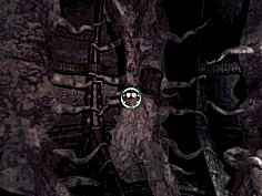 You are now in another group of prison cells. Move forward and when you turn the corner, a growling sound is heard. Look up to see a monster. In inventory, combine arrow with crossbow and then combine it with the green bottle. Shoot the monster. Go down the stairs, move forward until you find the remains of Lord Radu, hanging at the center of the pit. Jump forward to the skeleton, look close and open the metal helmet. Pick up the jeweled medallion in his mouth. You fall down the pit. Move forward and then go out. You are now at Borgo Cemetery.