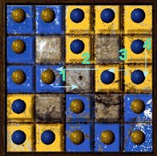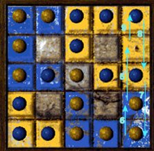 balls to similar colored tiles (blue to blue and yellow to yellow).