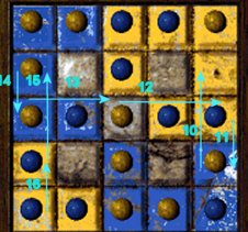 ball 12 onto head of blue arrow. Push ball 11 to hole. Push