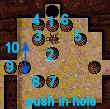 hole. Push ball 10 up, push ball 9 in hole. Push ball 10 down