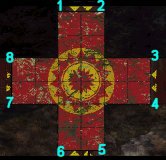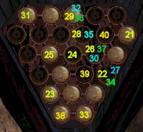 top becomes rows 2, 3, 1 at bottom. Easter egg - a rock beside a