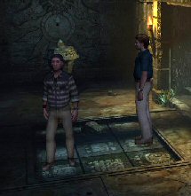 Temple of Dawn: Meet Pedro and he pushes left stone statue that opens a squares on the floor.