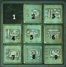 The aim of the slider puzzle is to place the tiles with glyphs over the identical glyphs hidden under the tiles.
