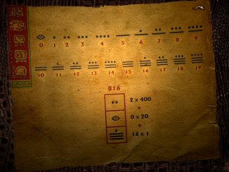 Look at the symbols at the base of the altar. These resemble the one in the back of the map. Look at the back of the map and hear the explanation. The bottom square is for ones, the middle is for twenties and the top square is for 400s.