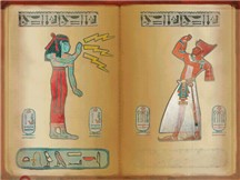Go to the washroom and see that the curator had some Essence of Maat made. Dip the black beetle on the essence and then click to place it in inventory. Look in the red book in the wallet. This action is based on another depiction in the red book - Toumchetki's Believers Book. Go to the stone with the carved cartouche and beetles at the small island.