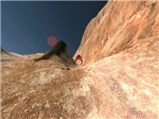 Climb up the mountain top: Walk up the left path and see that it is a dead end. Go back and take the right path. Go forward pass the metal steps on the mountainside and look up to see missing steps to get up the mountain. Look down from top of steps, turn right and see a hot spot. Place the rope on the hotspot (trigger for rappel). Turn back to the mountain cliff, look close on wall and place the rappel on the wall. Use hammer on rappel. Take the now accessible rope and click on the rappel. Go up and then click on the lowest metal step to tie the rope on it. Climb to the top.