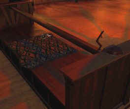 We'll just have to look out for those ingredients. Look in the crate that is the gift of the Pope to the King and get an aconite flower bottle. Now that the Master of the Horse is out of the way, we have to find the library and get the Basileus manuscript. Look in the map at level 1; the access to the library is by way of the King's bedroom, which is right above and adjacent to the fireplace. Pour the jug of water on the fireplace. Enter fireplace. Look up at the grate. Go out of the fireplace. Look again on the mechanism on the bench in front of the fireplace. Use small furniture key set with diamonds on the mechanism. Click on on the rod close to the corner of the seat cushion. The rod slides back and forth.