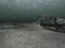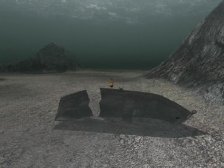 Use broken bottle on moss-covered door. Note the Ravens on the door. Turn around and move forward. Realize that the air has been cut off! Return to shore immediately. Timed puzzle.
