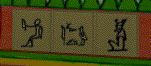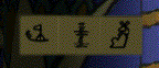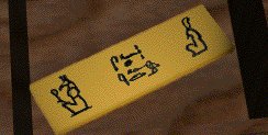 Go R, F, RA, F, D and read the ragged parchment paper. Go U, L, F, F, L and note the three symbols on the pillar. This is one of the four combinations to enter the Isis Chamber. Go F, R, F, L, F and open the wooden chest to find another of the four combinations to enter the Isis Chamber. Go U, U, L, L, F, L, F, LA, F to find the third of four combinations to enter the Isis Chamber. Click hand to back away from wall. Go L, F, R, F, F, R and click on table. Read ragged parchment paper on top of table. Open drawer in table and find fourth combination to Isis Chamber. You now have the four combination codes to enter the Isis Chamber across the courtyard: