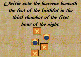 At different locations throughout the game, visions of Isis, Osiris, and the Priestess will appear. Listen to what they say as they will give clues. You can rehear their clues by pushing the Play button that appears on the screen after the first time you hear it. This Play button will always appear anytime you are in the exact location/direction of when you first heard the message.