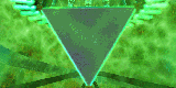 In the Upper level, there are nine murals on the wall. Each mural shows three symbols in a triangle shape, with a symbol in the middle of the triangle. Write down these combinations. There are nine murals, one for each planet in our Solar System. The symbol in the center of each mural represents a planet (note that the center symbol is the same as the symbol at the top of the triangle). Look down towards the floor until the cursor becomes a wavey arrow and click to go down to the Lower level.
