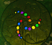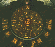 Go to the wall that has the red circle with three smaller circles around it. This is the Planets puzzle. Remember the nine murals in the Upper level? The object of this puzzle is to identify the symbol for each of the nine planets. To solve: