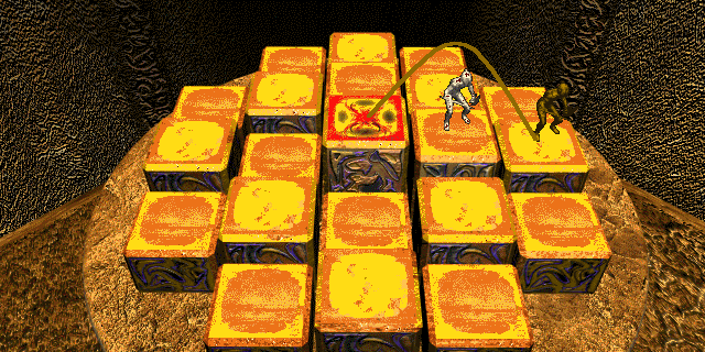 As soon as you get Underwater again, the Tetrahedron Color device will flash three colors. Note these colors each time a new set flashes. The object of this puzzle is to input, in order, one color at a time, those three that flashed. One correct sequence should solve the puzzle, however, your copy of the game may have a "glitch" in it; a patch is available from DreamCatcher Interactive, and also available as a link at the end of this walkthru. If you do not apply the patch, you may have to repeat this sequence over and over and over and over (maybe 25+ times). Once the machine is satisfied, an alien will automatically appear that you can talk to. (Finally! Someone who knows what's going on!)