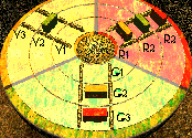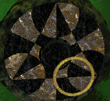 Millstone Nook: Click for a closeup of this puzzle. The object of the puzzle is to create a design where adjacent pieces are contrasting. When you first click on the millstone, the first piece is set for you, as well as it's shade (dark or light). When pattern is correct, click on the Yellow Ring that appears to add it to your inventory. Go next to (7).
