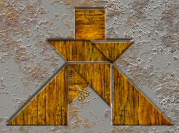Tangram puzzle - Combine the pieces of wood with the amulet in inventory. Fit the wood pieces inside the X like indentation. To turn the wood pieces place it on top of the arrow and then click. If done correctly, the amulet opens to be a key.