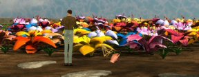 Arena - Enter and on the aerial view, place the trapping flower on the sole square slab on the ground. It will trap the ball of memory. Go back to the healer.