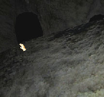 Walled in area - Go forward to the left of the scaffolding and see a cave that is partially blocked by boulders. Climb up and over the boulders. Walk over a plank bridge to the other side. If you have done everything in the main cave, the planks break and also the lantern.