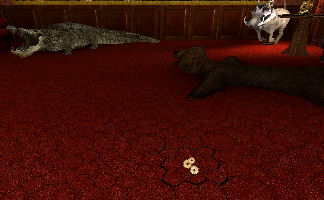 Big door on the floor - Go to the big door on the floor. Examine the footprints below the big double doors on the floor. Click on the doors and note that there is no way the 2 heroes can open it. How can we open that?