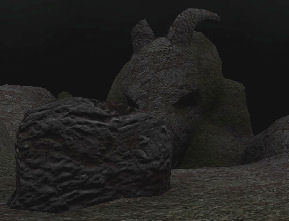 Watery cavern - Make another torch. Go forward and walk on the shallow water. Go left and see an exit blocked by a rock. Take the wooden leg caught by the rock. Go back to center of the cavern and go between the protruding rocks. Go to the left and forward to a gate.