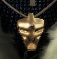 Use putty on the diadem. Use the red glass bead, amethyst and green shimmer on the diadem. The diadem now has jewels.