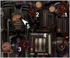 2) Slowly raise the boiler control lever (4) until the needle is in the green zone (5)