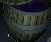 Tunnel: Turn left, click on matches to light one and then click on lamp to light the lamp. Take hatchet and see a match in inventory. Take lit lamp. Turn right and go forward to the end. See the submarine and supplies on the dock. Turn left, forward, left and see a locked barrel. Use the hatchet on lock 3xs. Use hatchet again on the bottom left of barrel to drain the water. Click inside the barrel and a chest will be seen. The chest opens to reveal the Amulet. Take amulet. The upper icon on the progress bar lights up now.