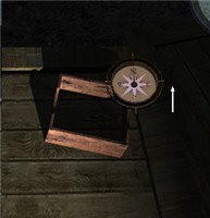 Go forward 2xs, turn right, forward into a small cave and look close at open crate. To move the compass, click-hold or just double click on compass and then move the mouse. Note that the compass is attracted to something on the east. Place the compass on the upper edge of the small box and then click on its right side.