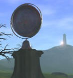 Look in the map and see that we are now at the east end of the island. Go out, turn left and then turn right to see 3 carved standing stones. Turn right and forward out to the meadow. Go forward until you pass through between 2 standing statues. Turn left and see a mirror on a stand.