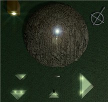 Door with Face: See a door with a face and keyholes. Use the just taken Zodiac key on the keyhole that corresponds to the current Zodiac sign used in the last puzzle (ex. Capricorn). The face opens to reveal brown book 3. The progress frame shows another lighted blue circle at the Ascension Book square. Note also the present location in the map. Read brown book 3 - The amulet will emulate the transcendental experience of the ascetic. It will give the recipient a brief glimpse of not just what was, but what could be. But the Amulet is a powerful gift that is to be employed judiciously. To the petitioner who is deemed undeserving, the amulet will be a hollow trinket indeed. Use the golden key on the keyhole on the left. The door swings open.