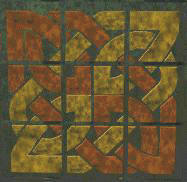Gazebo Gate Tile Puzzle: Click on the squares to rotate them. Start at the 4 corners; arrange them to be corners and to see where the rest of the colored lines go. Then do the other 4 outer squares and then do the middle.