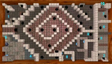 Mrs. Peacock's Game table Puzzle - The aim of the game is to get the ball found at top left to the hole at top right behind the walls. To do so, the walls blocking the right side should be lowered. The ball can be guided by click hold the ball to where you want it to go. To reset the puzzle, pull back from the game table. The game can not be saved while doing this puzzle.