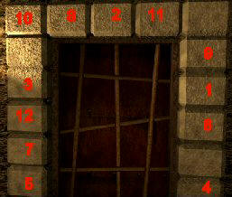 Barred door puzzle - Click on stones framing the barred door to release the bars. The stones must stay down when the next stone is clicked.