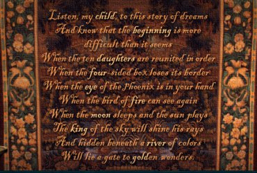 Return to your room. As you turn around to leave an envelope is pushed under your door with a sinister note. Someone wants you to leave! Go down to the parlor and you will see smoke coming from the sofa. Turn around and get the fire extinguisher from the little cabinet with the flowers on the door. Use it on the fire! Talk with Rose then go back down and check out what burned in the fire. Talk with Louis in the study, but don't let him know you found out about Gum Bo Fu from the book you found in his briefcase. You should bring up the subject of Gum BoFu, but tell him you learned about it from some other source. Talk to your friends on the phone again and then go up stairs. You will over hear Abby and Rose having an argument about the fire. Go down to the basement and talk with Charlie about the fire, the secret room, and Gum Bo Fu. Go up stairs to see Rose. She will tell you that you will be alone because everyone is going to the Winter Festival and she took one of the tapestries in your bedroom down to get dry cleaned. She also tells you that a messenger dropped off a letter for you. Go up to your room and read the letter from Emily. Note the Hanzi symbol for GOLD.