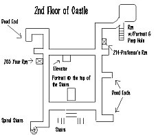 Walkthrough Written by: Norma Kuderna and Linda Shaw August 6, 2001 This is a complete walkthrough for the Senior Detective level, but will work for Junior Detective also. A few of the puzzles will be easier to solve in the Junior level. We will not include solves for all the puzzles, but if you are having particular difficulty with a puzzle please write and we will help. We also have many saved games in case you need one. The tutorial can be helpful if you are not familiar playing Nancy Drew games. Linda and I have enjoyed playing the Nancy Drew games since the first one, Secrets Can Kill came out, and look forward to each new Nancy Drew game. Nancy Drew 5, The Final Scene will be coming out this November! Check the following maps to help you find your way around the castle: Nancy is on a ski vacation staying at the Wickford Castle in Wisconsin. Christi Lane, a friend of Nancy's father, owns the castle. A blizzard swept in and closed the mountain and ended her plans for skiing. Nancy finds other ways to keep busy. The game starts with Nancy writing a letter to George. It goes into your inventory so you can mail it when you get a stamp later. Pick up your room pass key from the desk. Rm. number 205. Look at your locker card in the desk drawer. #310 with the combination 5-1-7. Take the menu from the top drawer of your dresser. Open magazine on the table and read how to get fingerprints. Check phone messages. Walk over by the radiator and notice that it must be broken. Open your suitcase and read the brochure. Exit your room and head downstairs to talk with Dexter Egan, the hotel manager. You can ask about the stamps and he will take your letter, but if you forget don't worry, it isn't crucial to the game. Talk to Dexter and exhaust all the conversations. Especially talk to him about the library and offer to help him. He will give you a chore to do. The ski rental office is open 9am - 12pm and 2pm - 5pm. You will pass by Lisa on your way down the spiral staircase to the basement. Talk to her about everything. She will tell you that Dexter keeps an extra Library key around his desk. (I wonder how she knows.) While you are in the lounge, read the 2 books in the bookcase. Check your watch, if it is still before noon, you can catch Jacques in his office and get the boots. Talk to him twice If the ski rental office is closed, pick up the little paint brush on the door ledge. Try out your locker and notice the combination doesn't work. To open the locker: Turn the dial to the right until you reach 5, then click on the dark triangle above the number. Turn the dial to the left until you reach 1, then click the triangle again. Turn the dial to the right until you reach 7 and click the triangle once more. Pass the time until 2 pm when the office opens again. Talk to Jacques twice. Locker 310 won't open with the 5-1-7 combination. Open locker 311. Learn about Lisa's secret identities/passports, ID's, etc. Also learn that she speaks fluent Spanish (unlike she said earlier). Go up the elevator to Professor Hotchkiss's room, #214. Return the boots to Professor Hotchkiss then take the elevator back down to talk with Dexter. [To return the boots, place them in the hall in front of her door. As you turn and walk away you will hear her open the door and take the boots.] You will get stuck in the elevator and the emergency button doesn't work! Turn around and look up for a way out. Jumping across to the metal ladder along the wall is a little risky, perhaps you can find another way. After you get back to the hall head down the stairs to talk with Dexter and let him know the elevator is broken also. He tells you that the lights in the upper spiral staircase are out and asks you to check the circuit breakers. Move the 3 sets as shown in the picture, then reset the elevator with the lever. Go back up the stairs and notice the lights to the upper staircase are on. Ask Dexter about your radiator again. He will tell you that you fixed the circuit breakers and then he will give you another errand. This time he wants you to run up and ask the professor what she wants for dinner. She tells you she would like cous cous. When you tell Dexter he says that she needs to order off the menu. Bring her the menu and she will order 50 chicken legs! When you give Dexter her order he will give you one last errand and that is to tell Jacques to take the bag of chicken legs out of the freezer to defrost. Now your radiator will be fixed and you are free to enjoy your vacation. Check your watch to see if you have time to meet Jacques in his office. If not you can either do some snooping around or go up to your room and set the alarm clock by your bed to a time when the ski rental office will be open. Once you relay the message to Jacques about the chicken legs, you will find an oil can next to your radiator and it will be fixed! On your way you can confront Lisa with what you learned about opening her locker by mistake. Ask her about her many identities. Talk to her about the SECRET GARDEN and TOWER ENTRANCE After you have the oil can you can do more snooping. Set your alarm to 8pm. Take the elevator to the basement and climb out. You should hear noise that sounds like sawing. Nancy will mention something about a strange noise. Turn around and look down. Nancy will say something about a strange noise coming from down below and that there is something important down there. To get into the Library the 1st time: While you are down in the basement climb up the metal ladder against the wall. When you are near the top you will notice a grate that is falling off and an open vent. Swing across to the vent and crawl through it until you come to the grate leading into the library. Open it and jump down. As you start to go down the stairs you will hear the sound of someone coming. Quickly turn around and get back into the vents. Watch Dexter type in the code for the alarm and search the library. When he is gone you are safe to go back in the l
