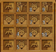 The aim of the puzzle is to have all fish at top row, all owl on middle row and rabbit at bottom row.