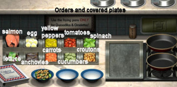 When each order is filled, click on the red square - Order Complete. Ollie will then take it automatically or you will hear him say if it is wrong. Hint - save the game after each order is correctly done.