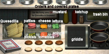 Hamburger - Take a hamburger patty and place it on the griddle. When it turns brown, take it and click it on the open bun. If you make a mistake, a fire might occur.