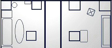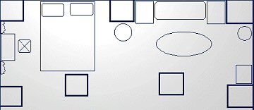 The object of the puzzle is to choose the correct floor plan for all sides of the room based on the positions of furnishings.