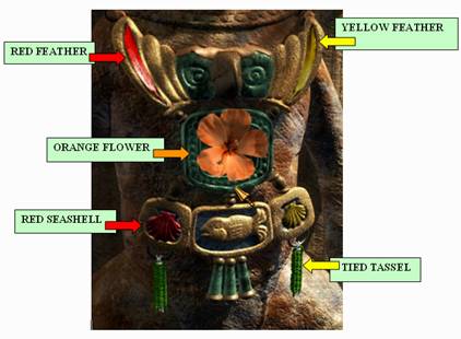 Turn back to the disks. We already know that the west is represented by "7 Monkey." In fact, the image of the monkey appears in the 3-o'clock position in the large disk. But it is there as the "destination point" from the last question. So just turn the large disk up or down a little and re-set the image of the monkey in the 3-o'clock position. Place your cursor on the white button and it should now show "Start Date: 7 Monkey."