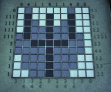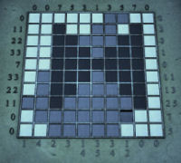 Microfilm: Using the enlarger, see that to the right of the trident is the pi symbol and to the right of pi is Jacob's ladder.