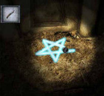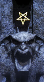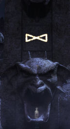 Path 3: Go to the left and draw an inverted pentagram. Place a feather in the mouth of the gargoyle. There's a jackdaw nest in the mouth already.