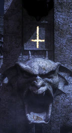 Draw an inverted cross and place the small chain from Stephan's necklace in the mouth of the gargoyle.