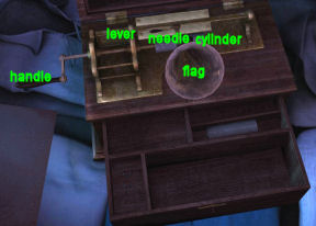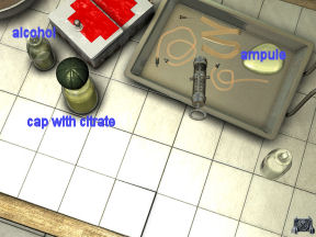 Path 4: Go to the left and draw an ancient cross or swastika. Place a syringe in the mouth of the gargoyle.