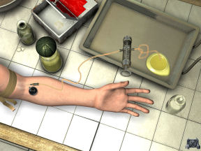 Test - Punishment. Arno takes the syringe from Irina's head.