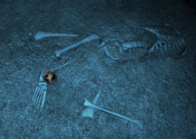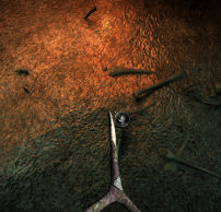 You can use your hands or use the forked stick to find the bracelet. Take the bracelet from the top part of foot of the skeleton directly below you.